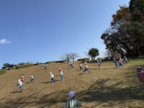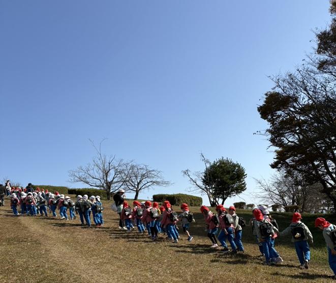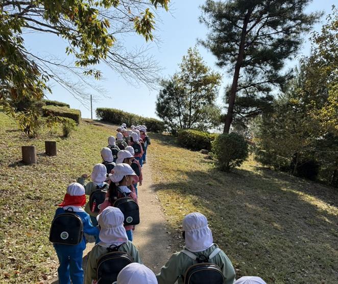年長組さんは、年少組・年中組さんたちよりちょっと遠回りのコースを歩いてきました。