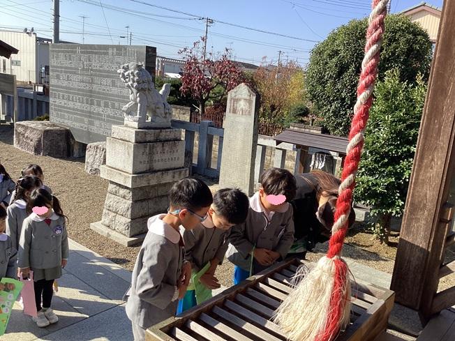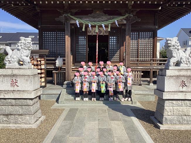 今日は年長組のお友達は、近くの天録稲荷神社に七五三のお参りに出かけました🌸
