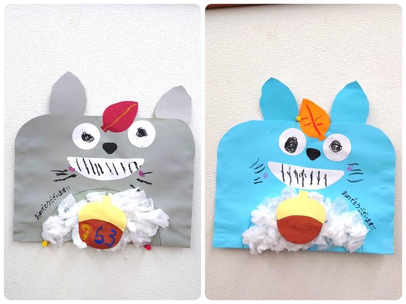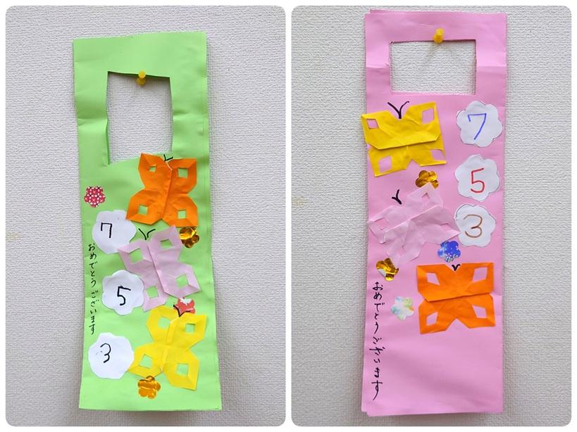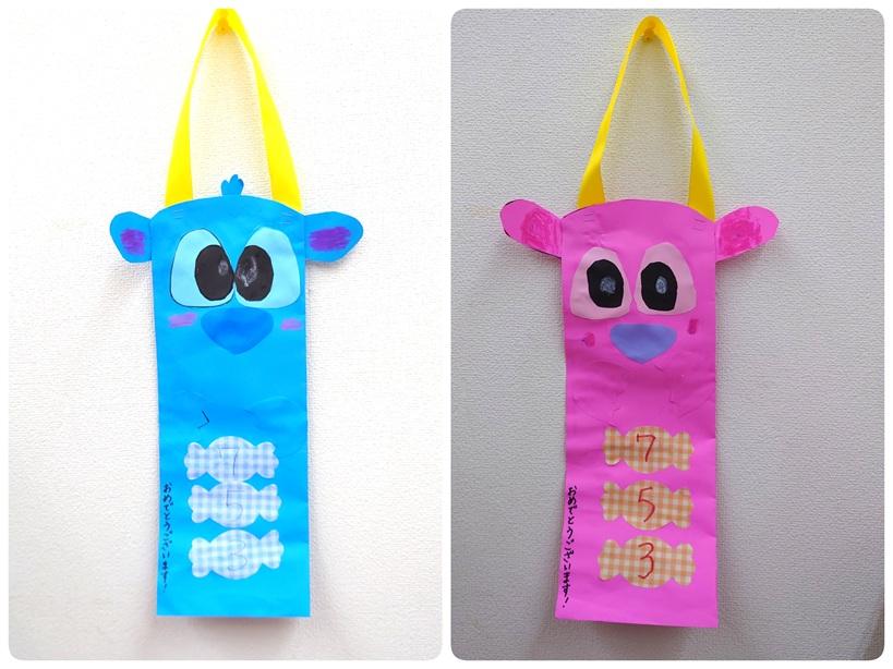 今日は、自分で製作した袋に、千歳飴を入れて持ち帰ります。