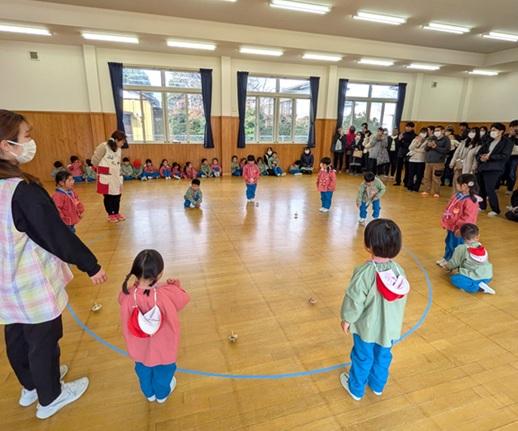 年少組のおともだちは、こままわしとぽっくり発表。