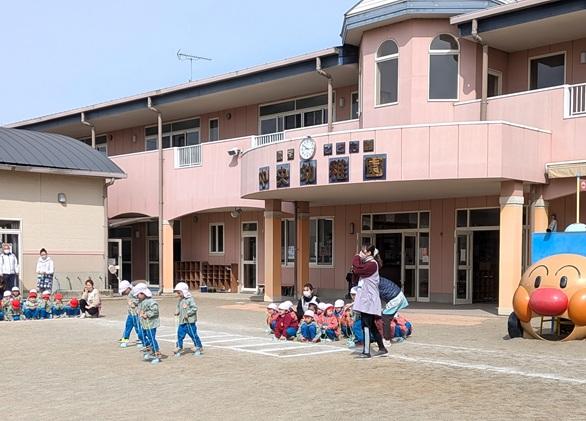 園庭では、ぽっくり競争をして、おうちの人に見てもらいました♪