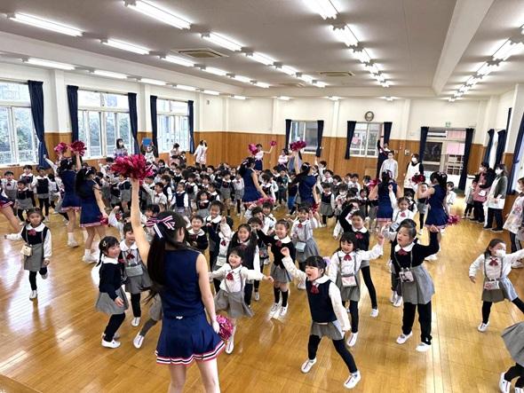 今日は、湖北高校のチアリーディング部のお姉さんたちがお別れ会に来てくれました💛